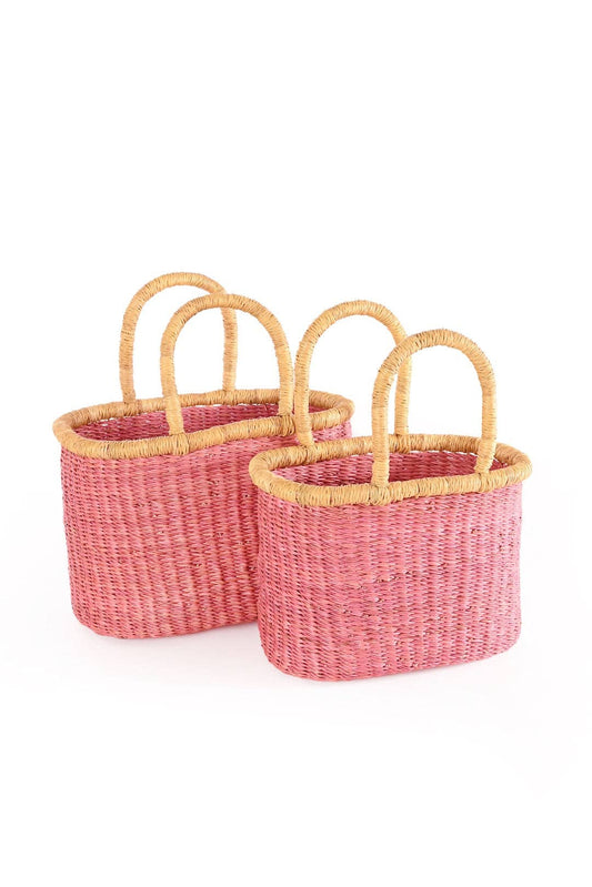 Bolga Tote Baskets, Pink, 2 Size Options