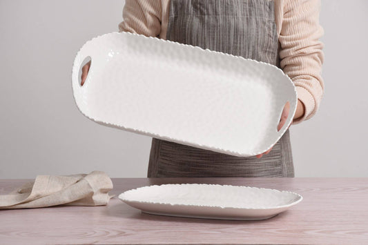 Bronze Melamine Serving Platter, Dark Metal Copper Color Pebbled Finish, 13.25 x 11.125"