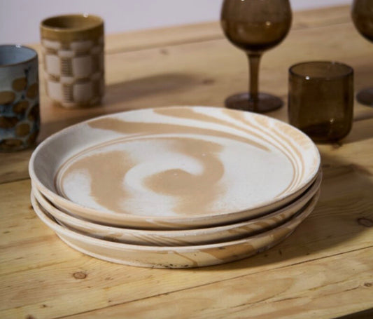 Marbled Charger or Plate, Ceramic, Tan or Dark Brown