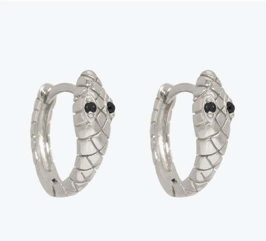 Snake Huggie Blue Black Eye Earrings, 18kt Gold Plating over Sterling Silver