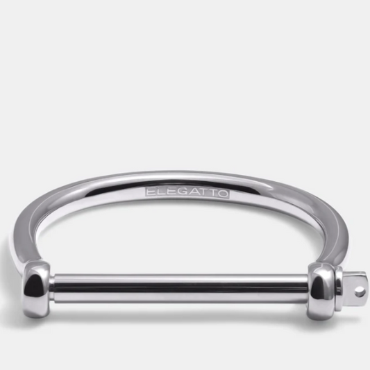 Silver Shackle Screw Bangle Bracelet - 925 Sterling Silver Plated Stainless Steel