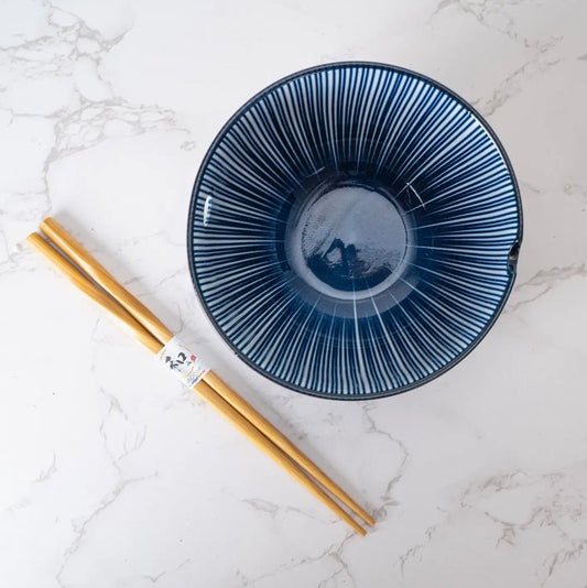 Tokusa Lines Blue and White Chopstick "Ramen" Bowl