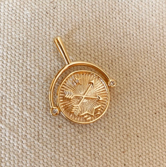 Compass Charm, Swivel, CZ Details, Gold Filled