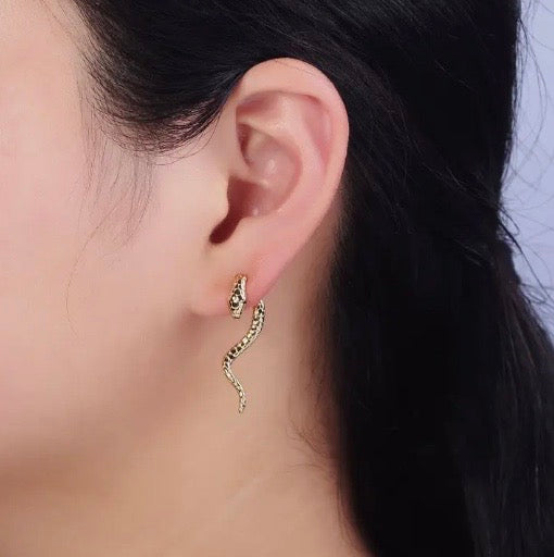 Serpent Wavy Drop Stud (front and back) Earrings, 16K Gold Filled