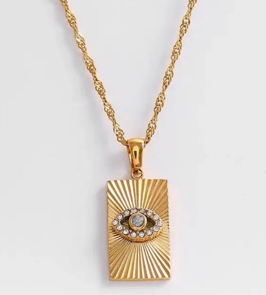 Evil Eye Clear Crystal Talisman Necklace - 14k Gold Plated