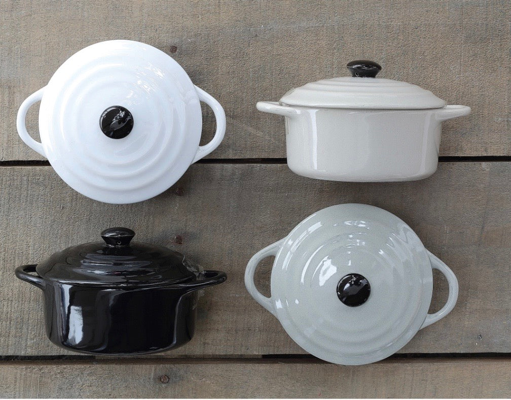 Black, White, Grey, Brie Baker, 5" Round Assorted Colors