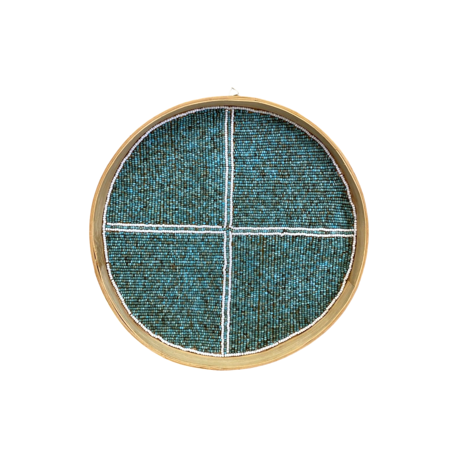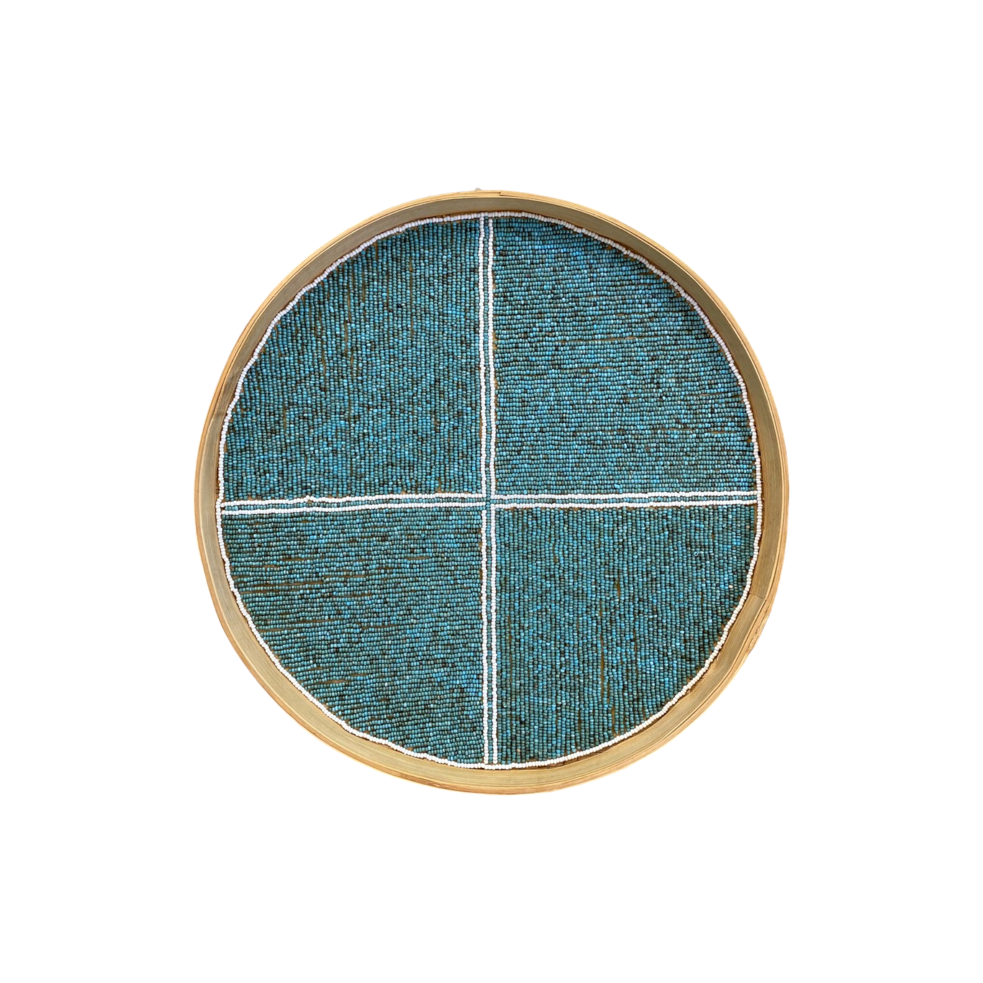 Stunning Beaded Tray. Mix of styles...A bit Seaside, a bit African. Definitely Functional. Handmade round bamboo serving tray crafted with seed beads.