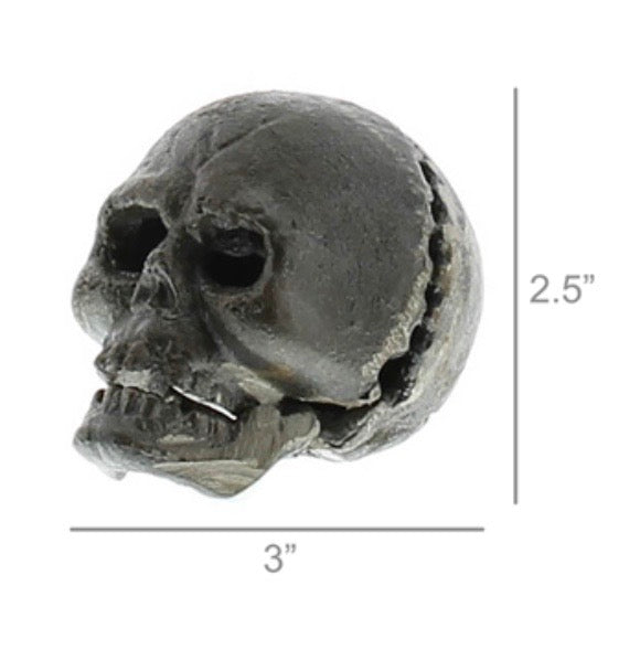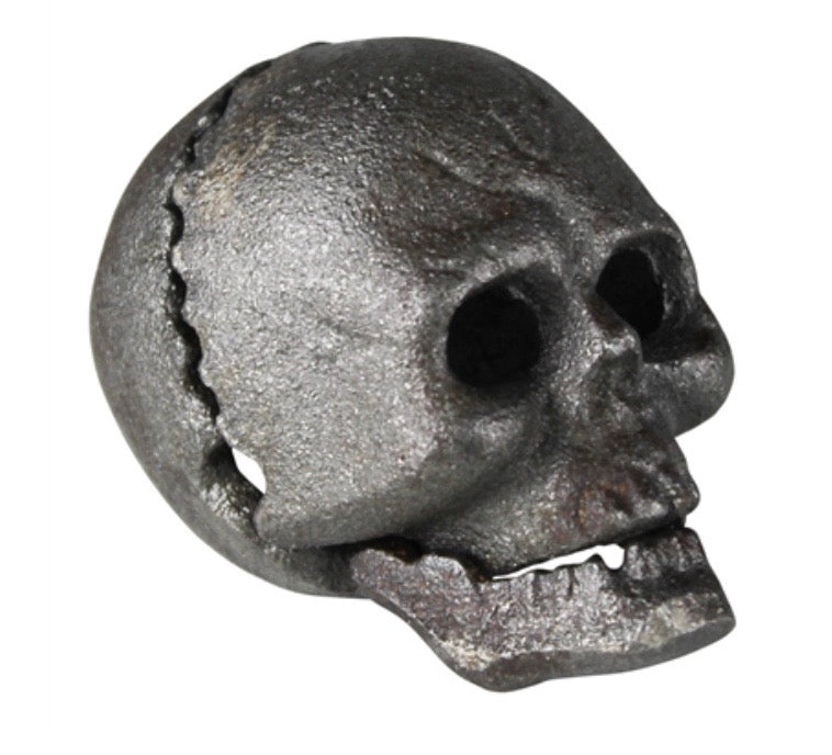 Do you love a stiff drink? Cast Iron skull with a clever moving jaw, this bottle opening is a sure conversation piece. The bottle opener is on the bottom edge back of the skull.