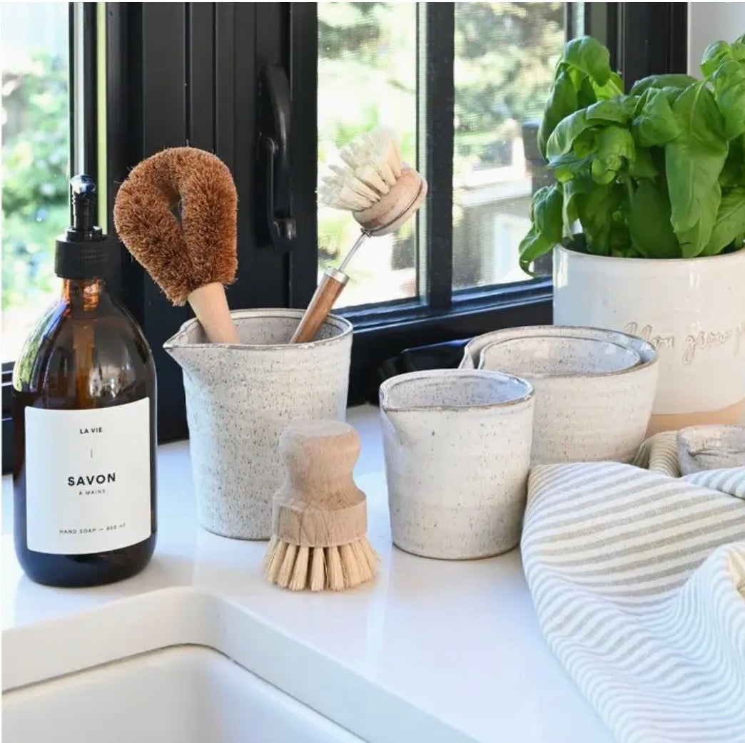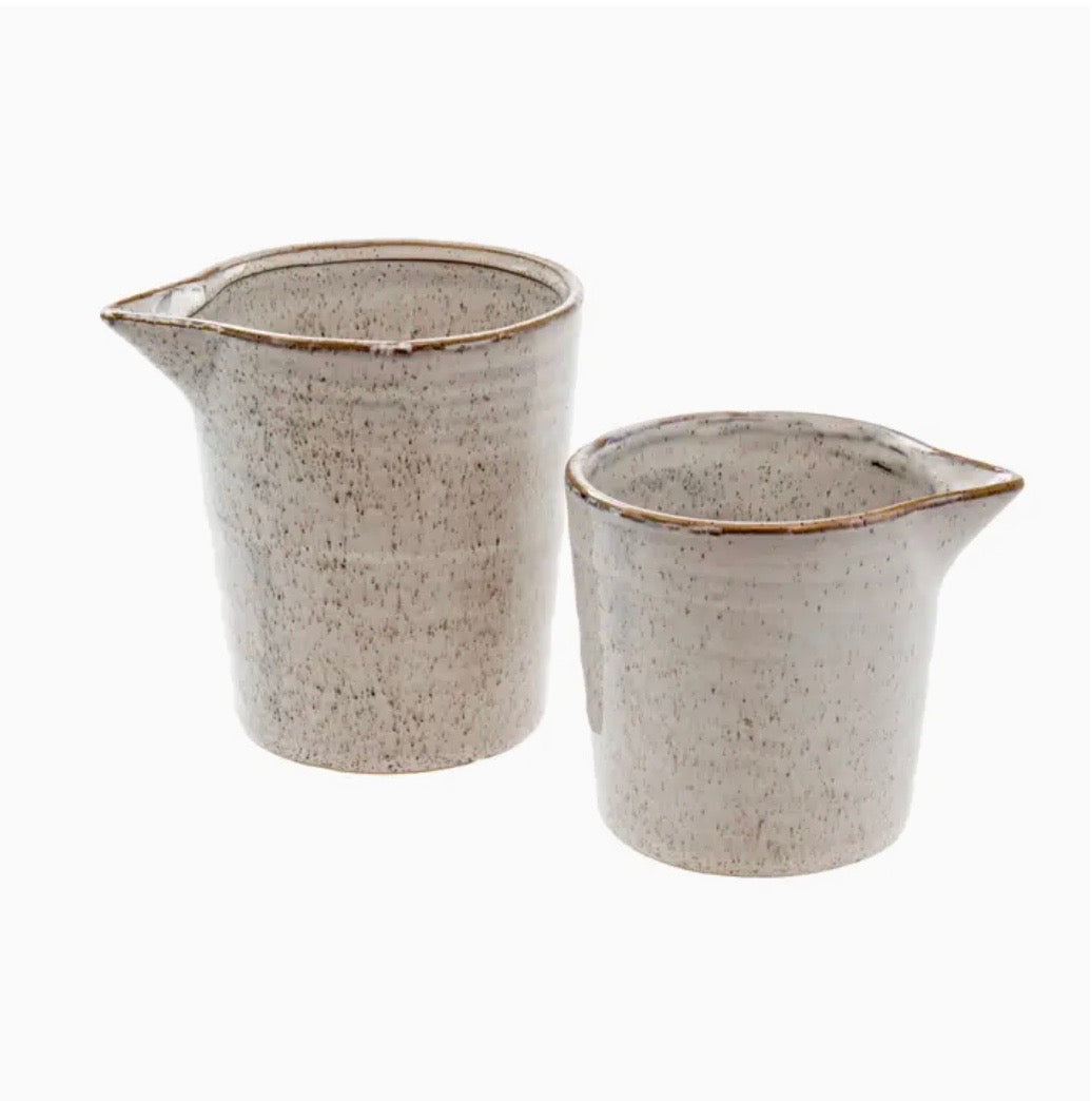The handcrafted Galiano Spouted Pitchers add an artisanal feel to your kitchen counter. Use them to store utensils by the stove top, as a pitcher or to display your favorite blooms. Microwave and Dishwasher Safe.