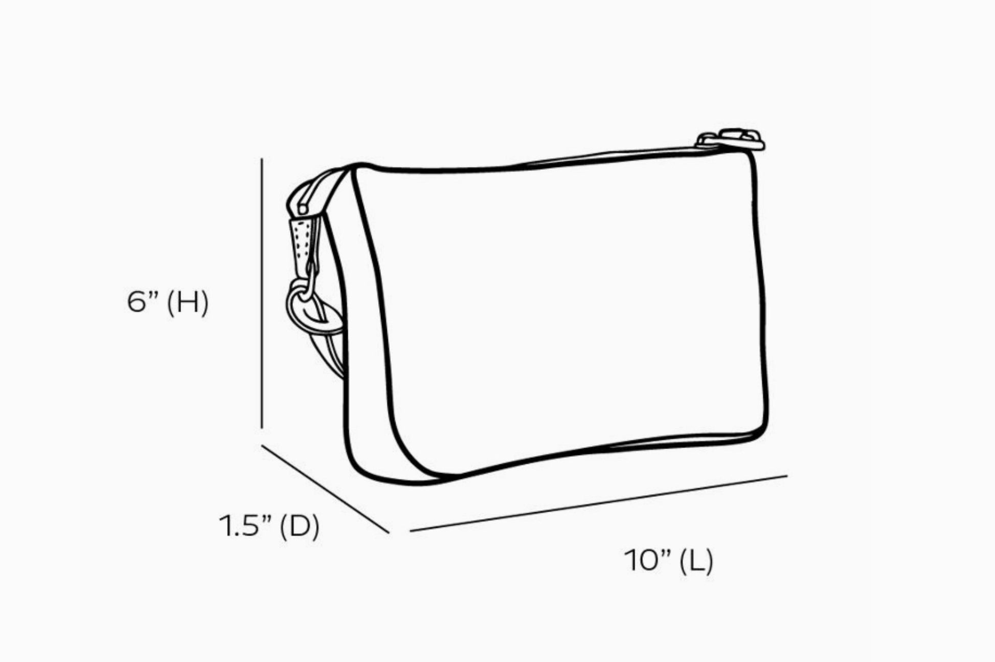 This versatile bag a Slim profile shoulder bag perfect for day or night. Made of water resistant suede and leather straps.