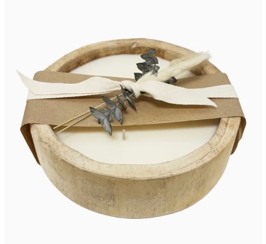 Made in a Paulownia wooden tray and using a soy wax blend with a subtle palo santo fragrance so that it doesn't overpower yet adds a beautiful natural smell to the already natural look. - Subtle palo santo fragrance - 25" length x 9" width x 3" height - Hand carved Paulownia wood - Light natural color - Packaging: Wrapped in paper. Natural stems tied to ribbon. Dried Plant Stem styles may vary.